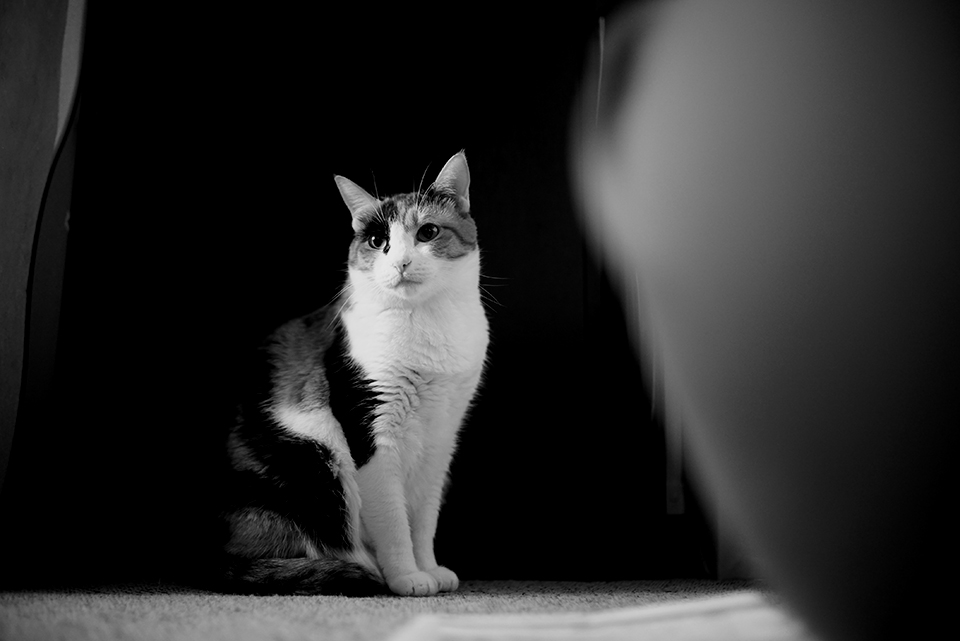 ただいま我が家は私と相方殿と三毛猫と黒猫で同居中。以前は小柄なアメショーと大きな黒猫と同居だった。二匹とも穏やかな性格でよく懐いていたがすでに亡くなり、今は三毛猫と黒猫の二匹と同居中。この二匹は里親募集で我が家へやってきた。最初は黒猫、兄妹だった三毛猫を引き離すのは忍びなかったので続けて三毛猫も我が家へ迎えた。これが試練の始まり。